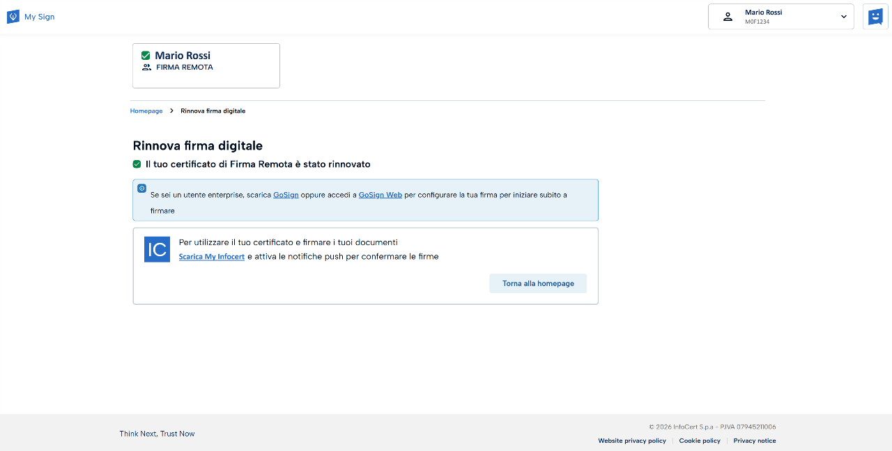Il portale My Sign confermerà la conclusione del processo di rinnovo.