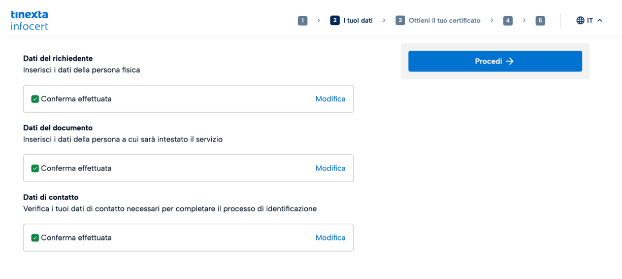 Un click sul tasto Procedi permette di passare allo step successivo.