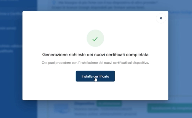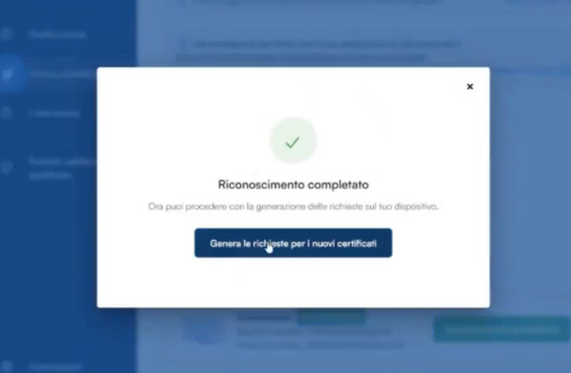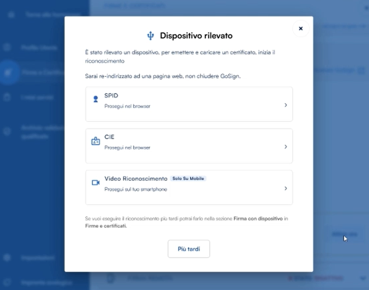 Da ora è possibile generare i certificati del dispositivo fisico in GoSign Desktop.