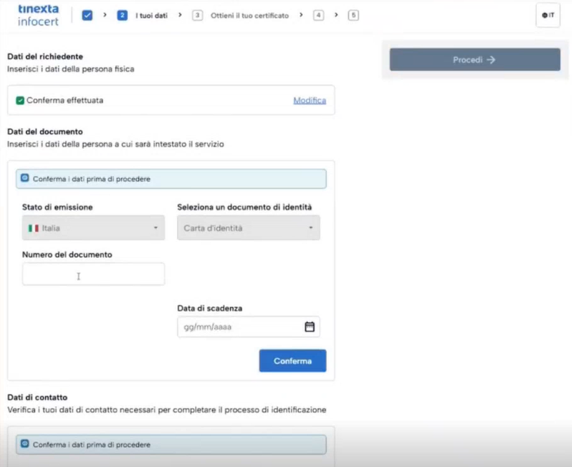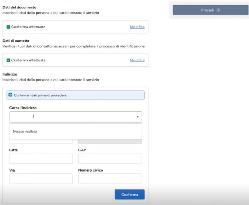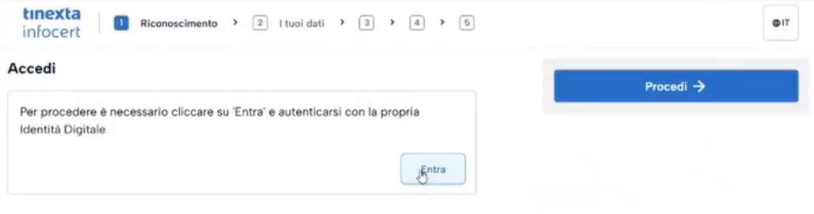 Dopo aver confermato i dati del titolare cliccare su Procedi per il riconoscimento con SPID, scegliendo il service provider con cui si ha attivo il servizio SPID.