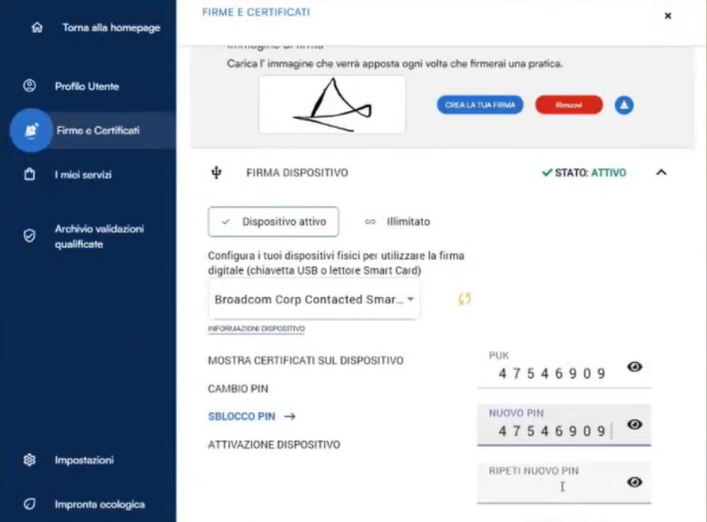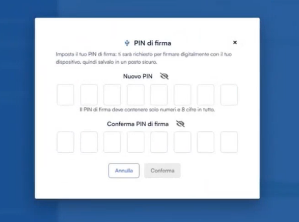 ATTENZIONE: una volta scelto il PIN di firma non sarà possibile recuperarlo in caso di smarrimento.