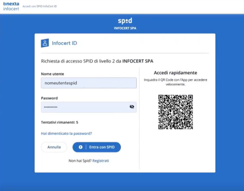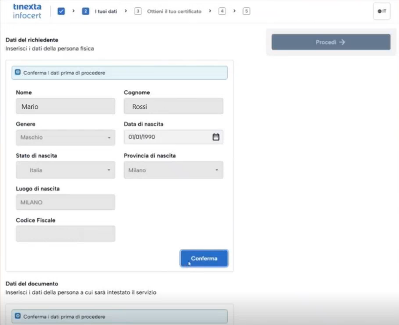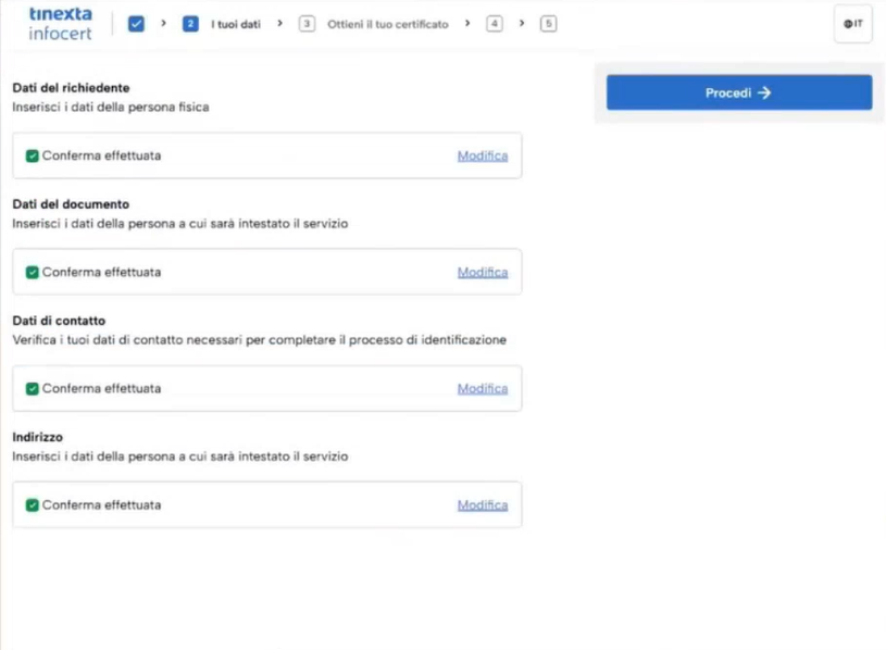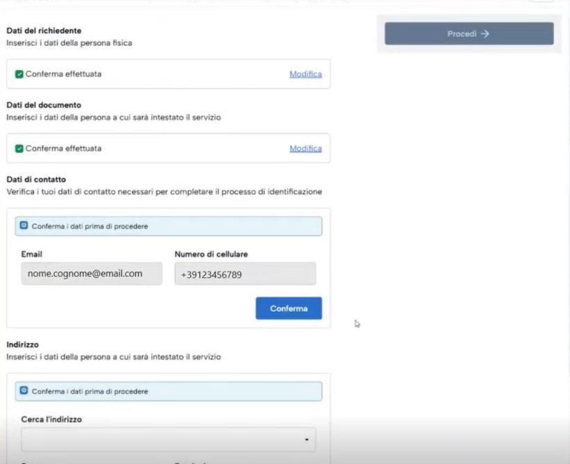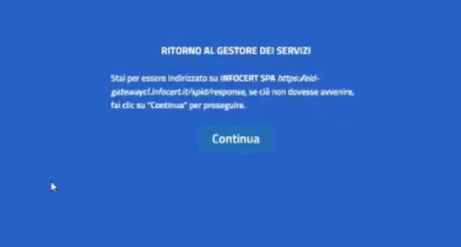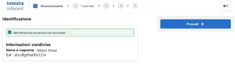 Completata la fase di riconoscimento SPID l’identificazione sarà avvenuta con successo. Cliccando sul tasto Procedi si passa alla seconda fase
