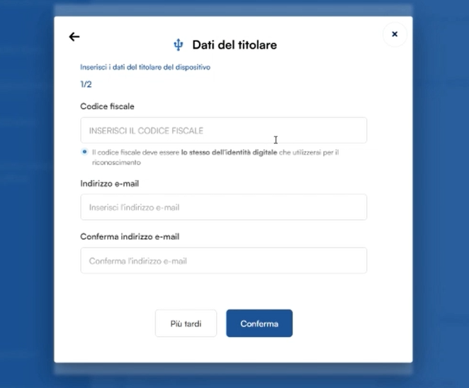 Inserire Codice fiscale e indirizzo e-mail del titolare di firma.