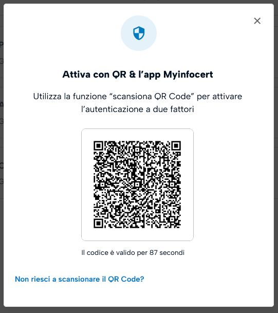 Utilizza la funzione "scansione QR Code" interna all'app My Infocert per inquadrare il codice QR che viene mostrato a schermo.