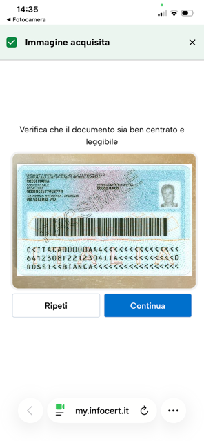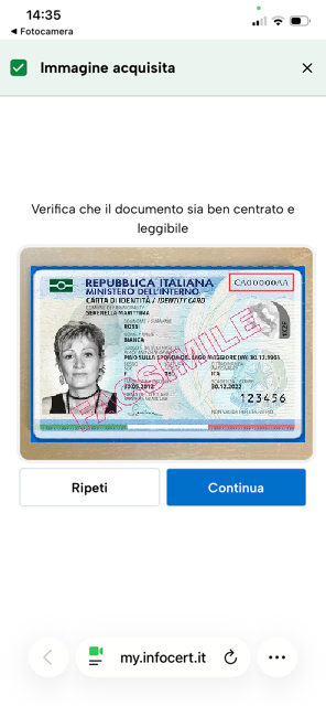 Se credi che il documento caricato non sia ben visibile o leggibile, clicca sul pulsante "Ripreti", altrimenti procedi con "Continua".