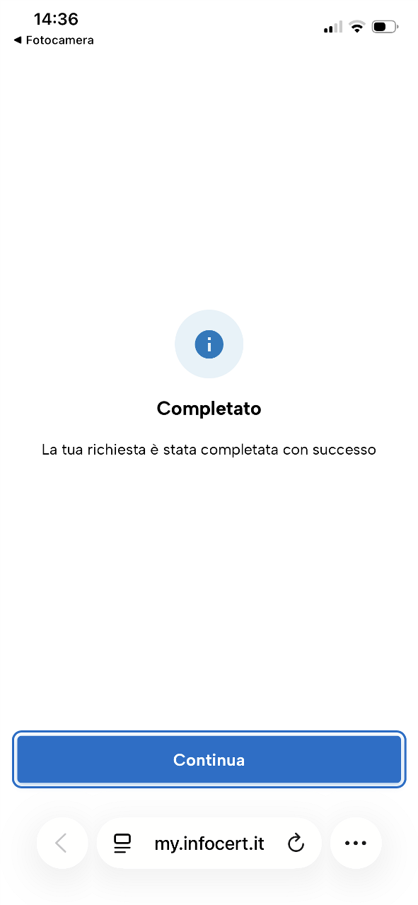 RICORDA: per motivi di sicurezza, l'account SPID InfoCert ID resterà sospeso fino al completamento delle verifiche, che potrebbero richiedere fino a 48 ore. In quel lasso di tempo, lo SPID non sarà utilizzabile per le consuete mansioni.