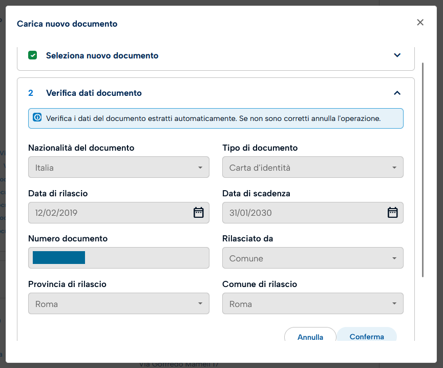 In questo modo si aprirà un pannello dove verrà richiesto l'inserimento manuale dei propri dati presenti nel documento da caricare.